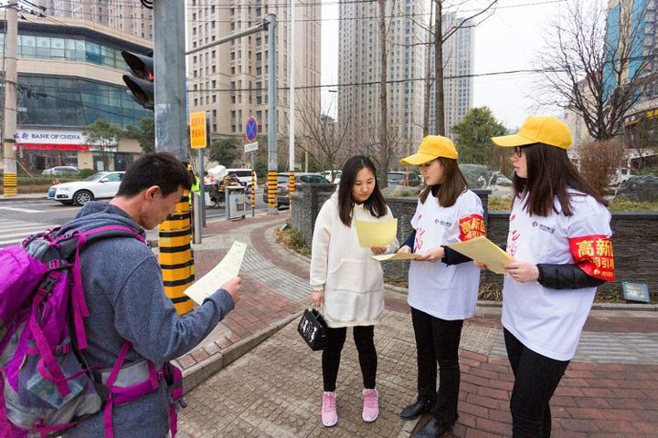 此外,志愿者们还向过往行人发放倡议书,宣传文明出行理念,受到好评。