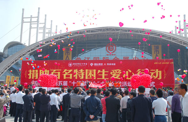 2009年4月16日,由ng电子娱乐携手西安市红十字举办的第五届“十元献爱心捐助百名特困生爱心行动”启动仪式在曲江国际会展中心住博会现场隆重举行。 本次爱心助学活动捐赠的对象为周至县100名特困高、中、小学生,由西安市红十字会在周至全县范围内选出。为了使本次的捐助善款最终能够下发到捐助的学生手中,西安市红十字会全程参与,捐款情况将在西安市红十字会网站公布。